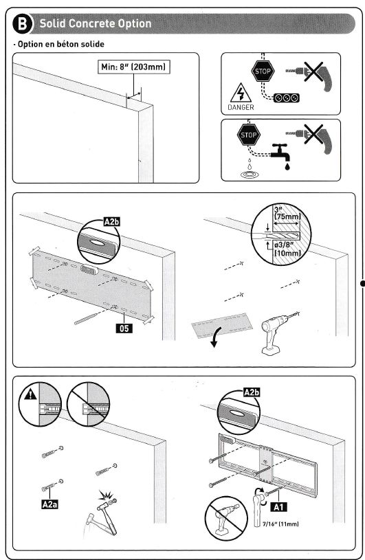Attach the TV Brackets to Your TV Determine Your Wall Type: Drywall (Interior Walls or Concrete Wall (Exterior Walls) Install the TV to the Wall Plate